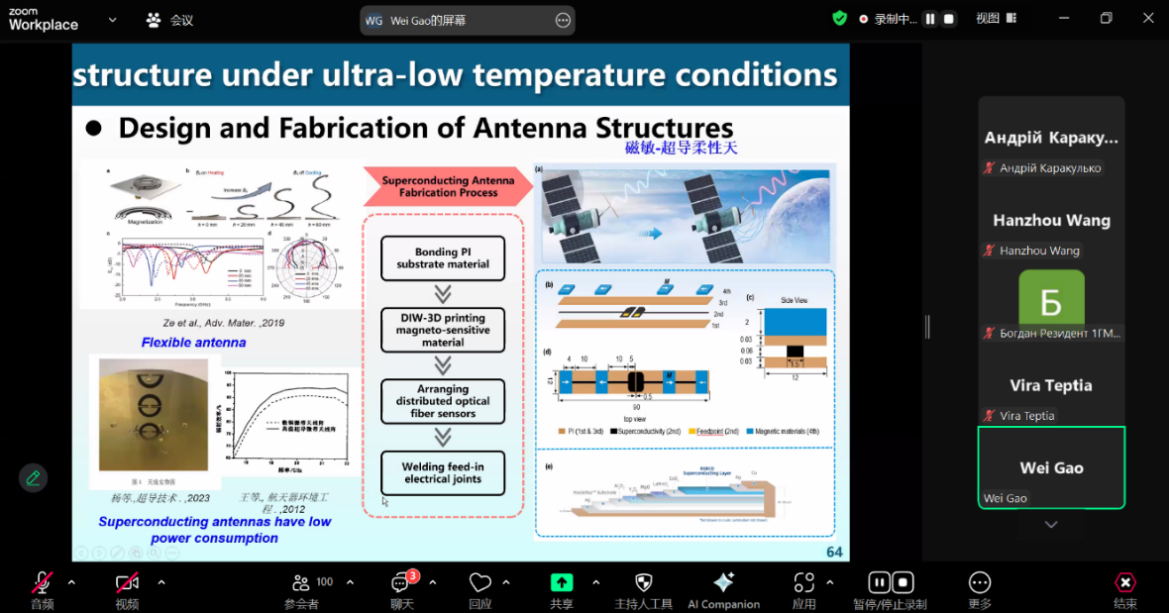 高伟老师报告的题目是磁流变材料及其潜在应用(Magneto-rheological Materials and Their Potential Applications)。报告系统介绍了磁流变(MR)材料的组成、制备工艺(如3D打印、涂层技术)、多场耦合行为(磁-热-力学性能)及其在仿生结构(如磁驱动机器鱼)、传感-驱动一体化设计和超导柔性天线等领域的应用,展示了其在智能结构、生物医学和极端环境中的巨大潜力。
