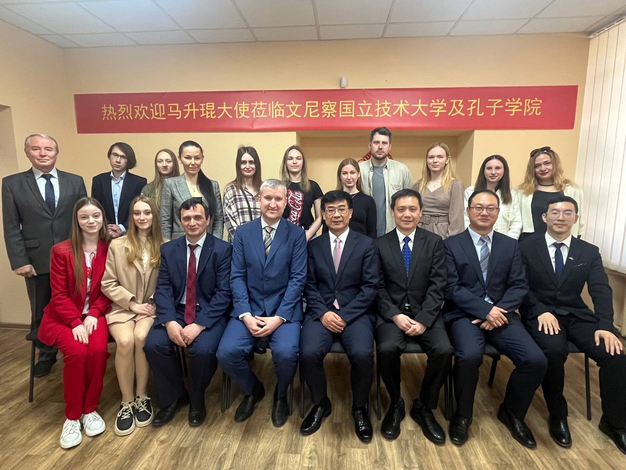 马升琨大使与文尼察国立技术大学孔子学院师生合影留念