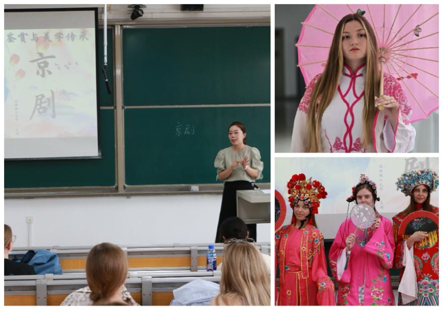 王娟老师没有想到,俄罗斯和中亚学员对我们的国粹戏曲如此热情,每一个学员都毫不掩饰对华服的喜爱和对王老师华美唱腔的倾佩。从生旦净丑的角色分辨,到水袖轻扬、身段走位,学员们学得有模有样。一句句念白、一段段唱词,让他们领略到戏曲的独特韵味,沉浸式感受中国传统艺术的写意之美。