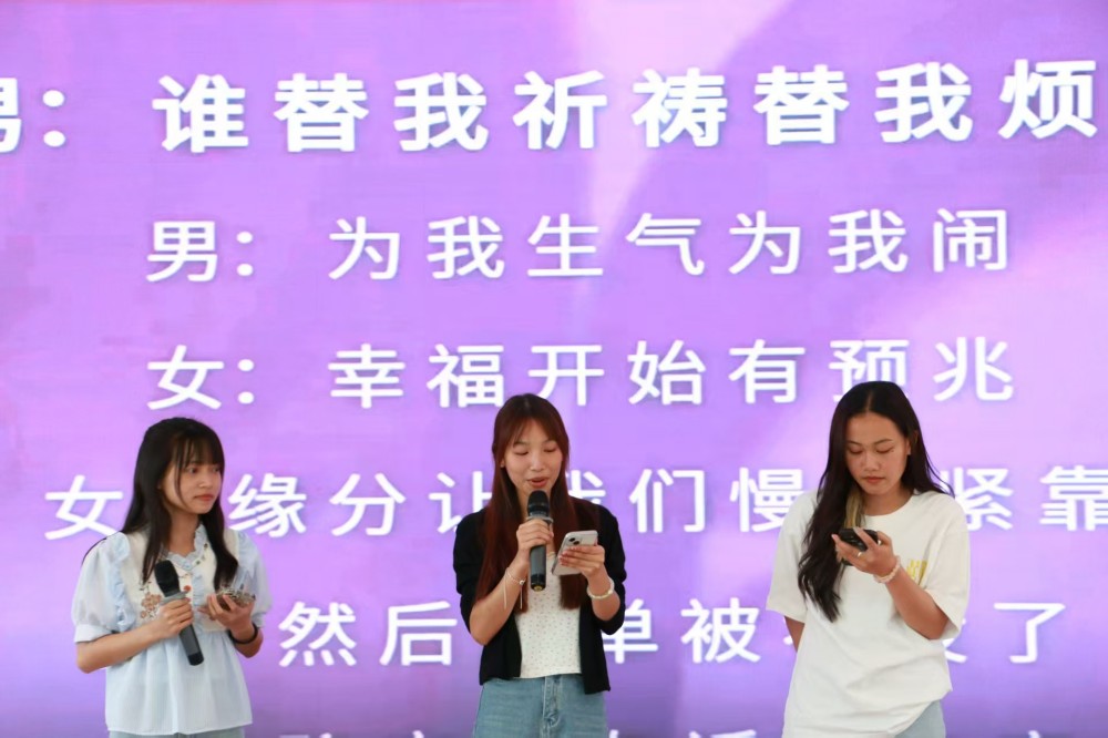 赛妮、尚月花和马日妍演唱歌曲《小酒窝》
