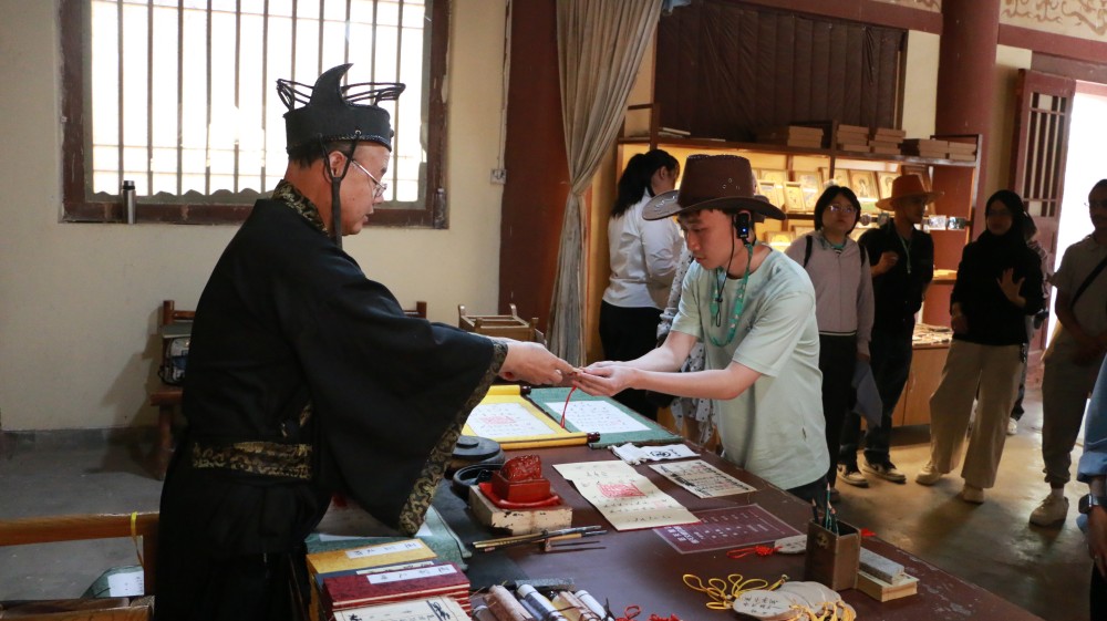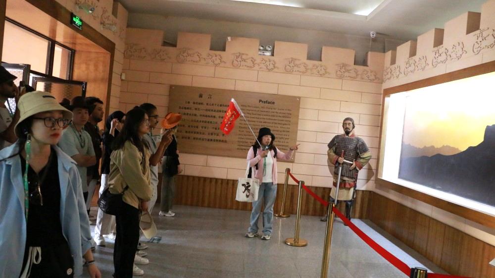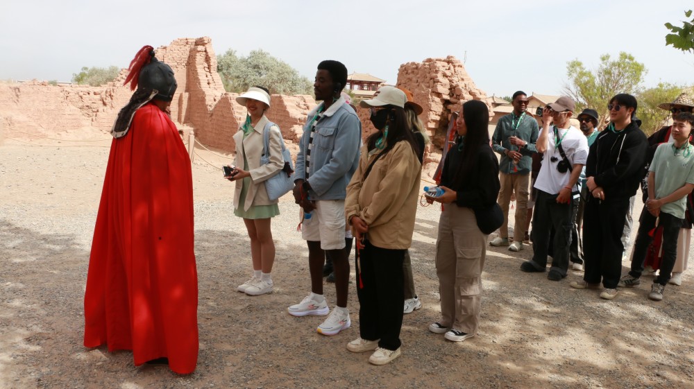 在阳关,国际学生们走进阳关博物馆,通过一件件珍贵文物与详实史料,探寻丝路重镇的辉煌过往。随后的出关仪式更是将活动推向高潮,学生们手持通关文牒,庄严地跨越仿古城门,切身感受古人“西出阳关”的壮志与情怀。