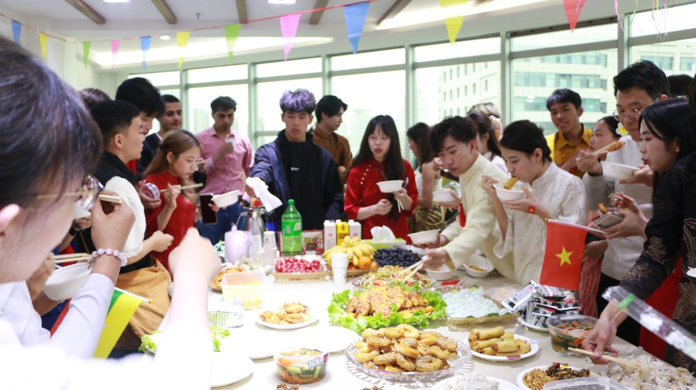 活动最后,全体师生与甘肃省国际文化交流协会工作人员共同品尝了国际学生亲手制作的东南亚特色美食,活动在欢声笑语中圆满落幕。(撰稿:陈妮达;初审:冶文玲;终审:冯涛)