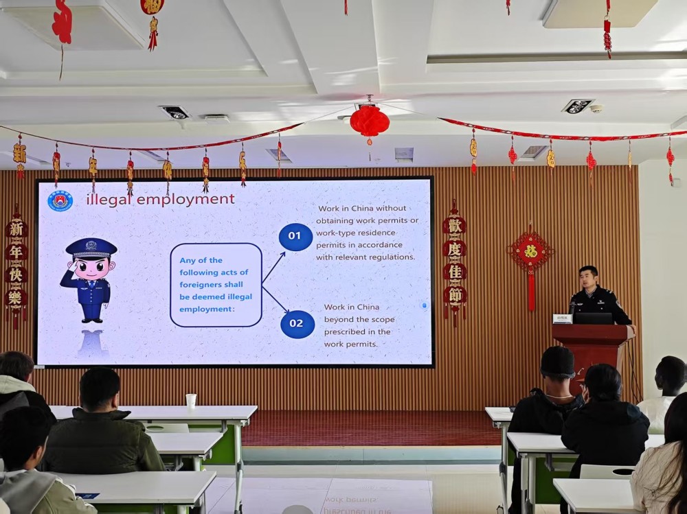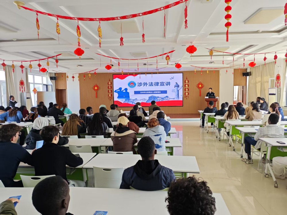 活动伊始,公安局民警白明祖结合留学生在华学习、生活的实际情况,详细讲解了与他们密切相关的法律法规知识。从兰州地理位置、气候特点、风土人情等地域文化导入,讲解了出入境管理、签证办理、居留许可等方面的规定,到日常交通出行、预防电信诈骗,民警都进行了深入浅出的阐释。在讲解过程中,民警还运用大量真实案例,生动形象地展示了违法违规行为可能带来的严重后果,让留学生们深刻认识到遵守中国法律的重要性。