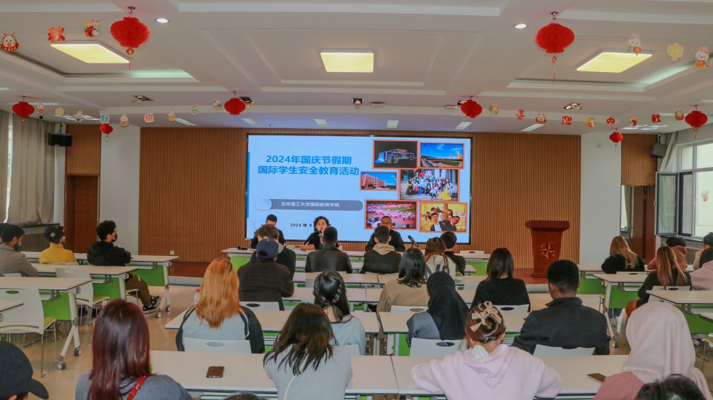 2024年9月29日下午,学院领导、国际学生辅导员集中召开国庆节安全教育活动,班主任积极组织安全主题班会,向学生们强调假期安全的重要性,并从请销假制度、用水用电安全、交通安全、出行安全、网络安全、预防电信诈骗、防溺水、行为规范、非法就业及惩处、公寓管理规范等方面开展了专题安全教育。学院直属党支部书记王春梅要求全体国际学生:一要提高安全意识、严格遵规守纪,确保自身及他人生命财产安全;二要严格请销假制度,做好规划,结伴而行,按时返回学校;三要合理利用好小长假,到兰州及周边走走看看,感受热烈喜庆的节日氛围。学院院长刘永平强调:一是合理安排学习与文娱时间,做到学习充电与娱乐放松两不误;二是提高有效沟通能力和疏通矛盾问题反馈渠道,遇到问题通过有效沟通合理化解,或向现场工作人员、学院值班教师寻求帮助,协力平稳有效化解矛盾;三是希望同学们深入中华大地,开拓眼界、增长见识,认识真实、立体、全面的中国。