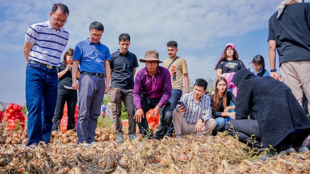 果蔬飘香,五谷丰登。9月22日是二十四节气秋分,也是中国第七个“农民丰收节”,秋分标示着农民进入秋收、秋藏、秋播的繁忙时节,来华留学生们来到白银景泰条山农场,参观了农场的大型农业机械库和土豆、洋葱收获现场,了解了现代农业的生产模式和技术创新。在这里,同学们沉浸于广袤的田野风光、陶醉于宏大的丰收盛景。他们不仅看到了丰收的喜悦,还感受到了中国农业的蓬勃发展。