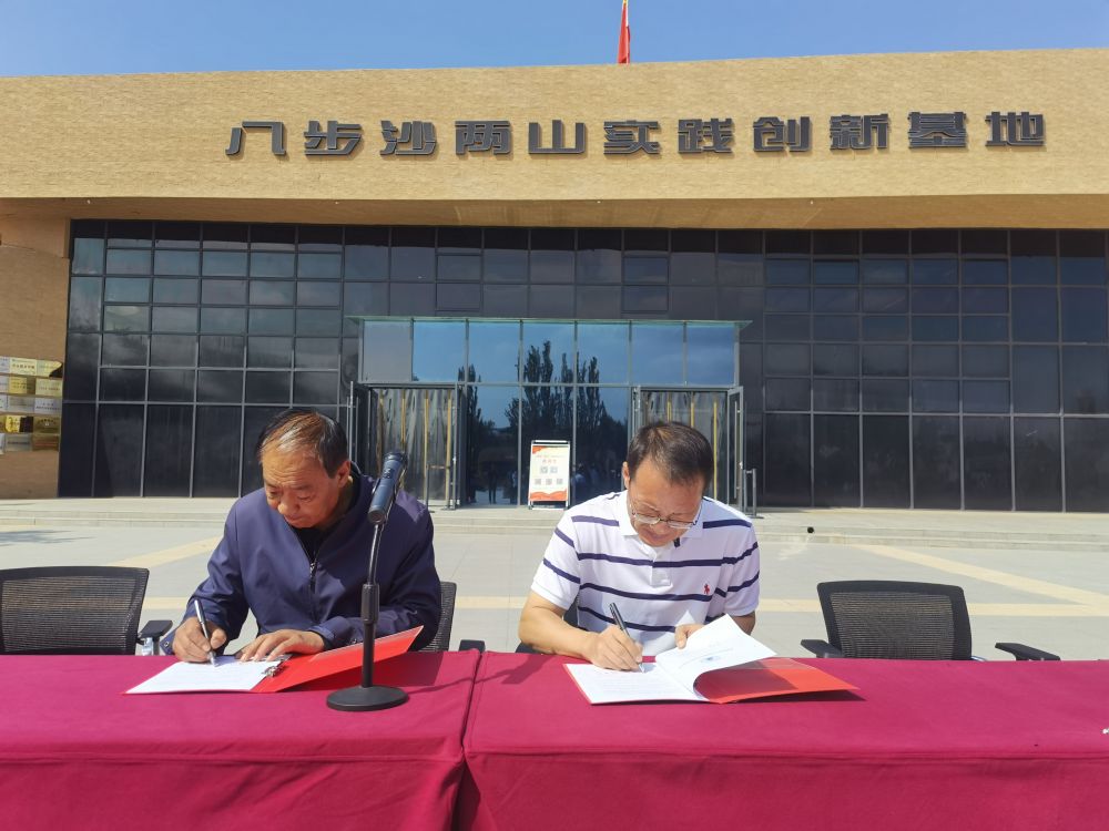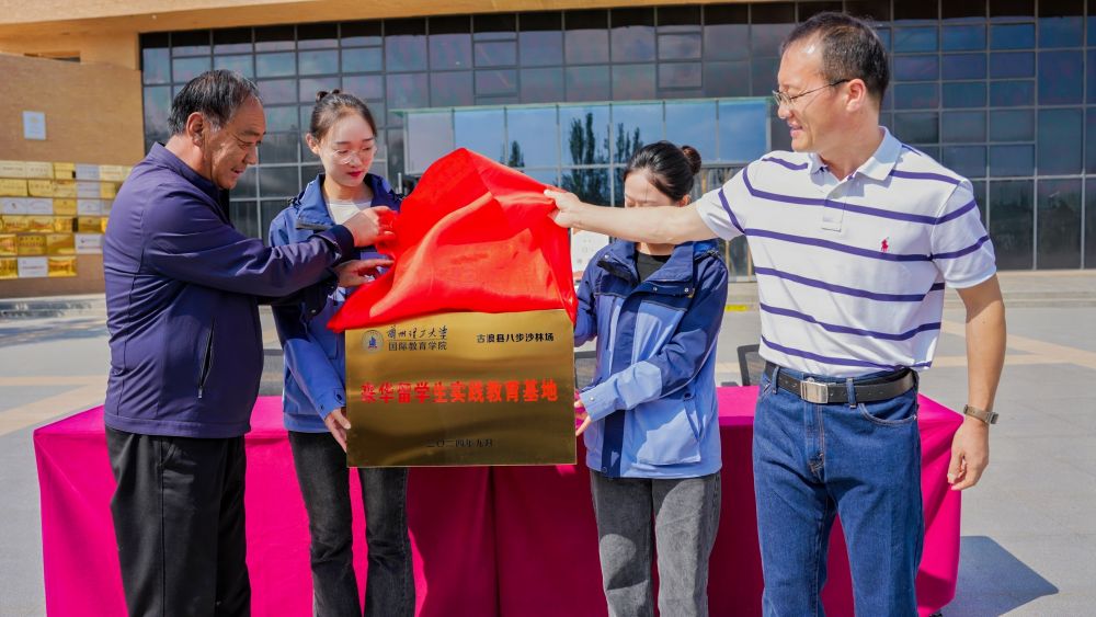 9月21日,经过前期沟通,来华留学生实践教育基地签约揭牌仪式在古浪县八步沙林场为活动拉开帷幕。古浪县八步沙林场副场长贺中强致欢迎辞,他对留学生来到林场考察学习表示欢迎,并勉励同学们认真学习科学文化知识,不断磨砺不畏艰难、吃苦耐劳的精神,不断成长为对社会、对人类发展有用的栋梁之材。国际教育学院副院长赵付青感谢林场领导及工作人员的认真准备,希望通过共建实践教育基地,进一步丰富来华留学生实践体验活动,提升来华留学生环境保护意识,锻炼学生“困难面前不低头、敢把沙漠变绿洲”的顽强毅力,不断把真实、立体、全面的中国讲述给国际社会更多人。贺中强与赵付青共同为实践教育基地签约、揭牌。