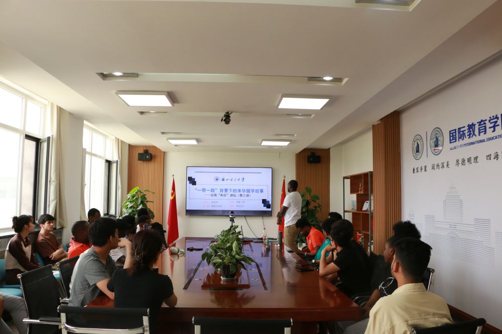 2024年8月6日上午,学院邀请刚果(布)籍国际学生、学校“优博项目计划”获得者周浩然(MOMBEKI PEA HAMIR JOHAN)主讲了丝路“和合”讲坛第五讲(“一带一路”与家乡子项目第三讲)。周浩然作了题为《“一带一路”背景下的来华留学故事》的精彩报告。