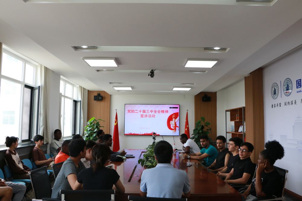 2024年8月6日上午,省外事办组织了党的二十届三中全会精神线上宣讲活动,我校来自15个国家的30多名国际学生受邀在敦雅楼A区会议室以“线上+线下”相结合的方式参加了宣讲活动,刚果(布)籍国际学生、博士研究生周浩然(MOMBEKI PEA HAMIR JOHAN)代表全体在校国际学生作了会议发言。