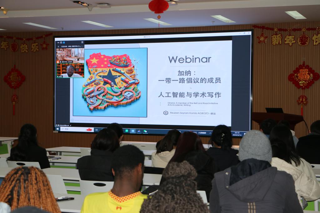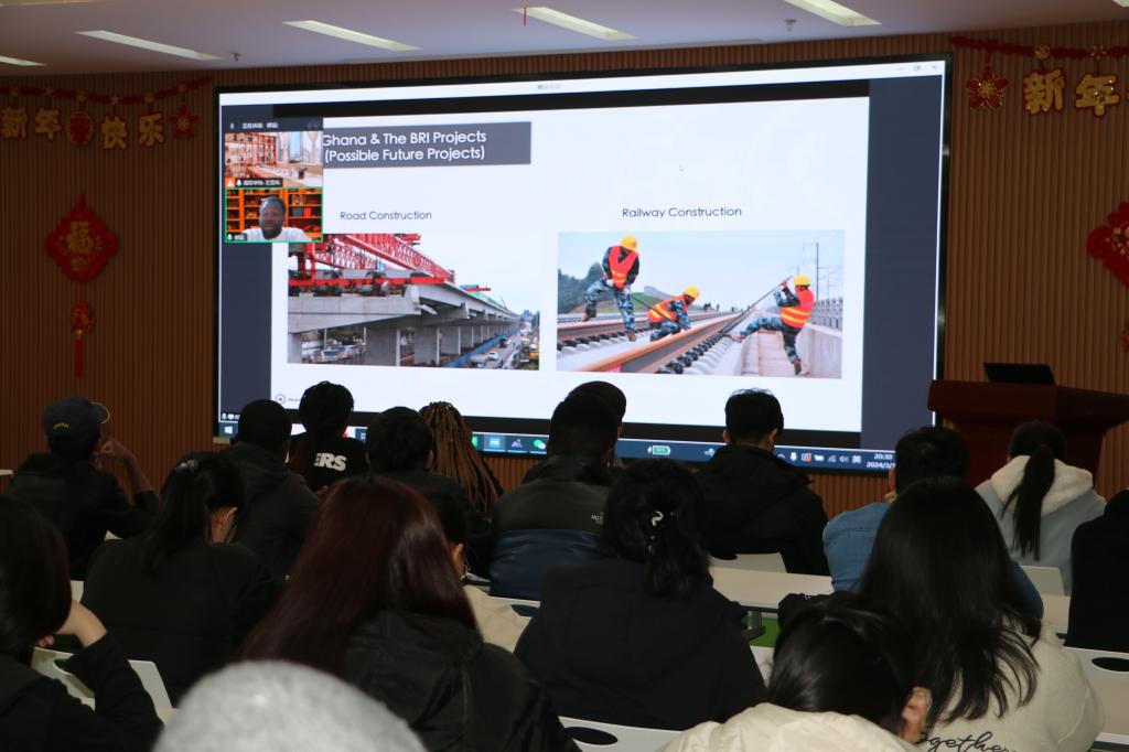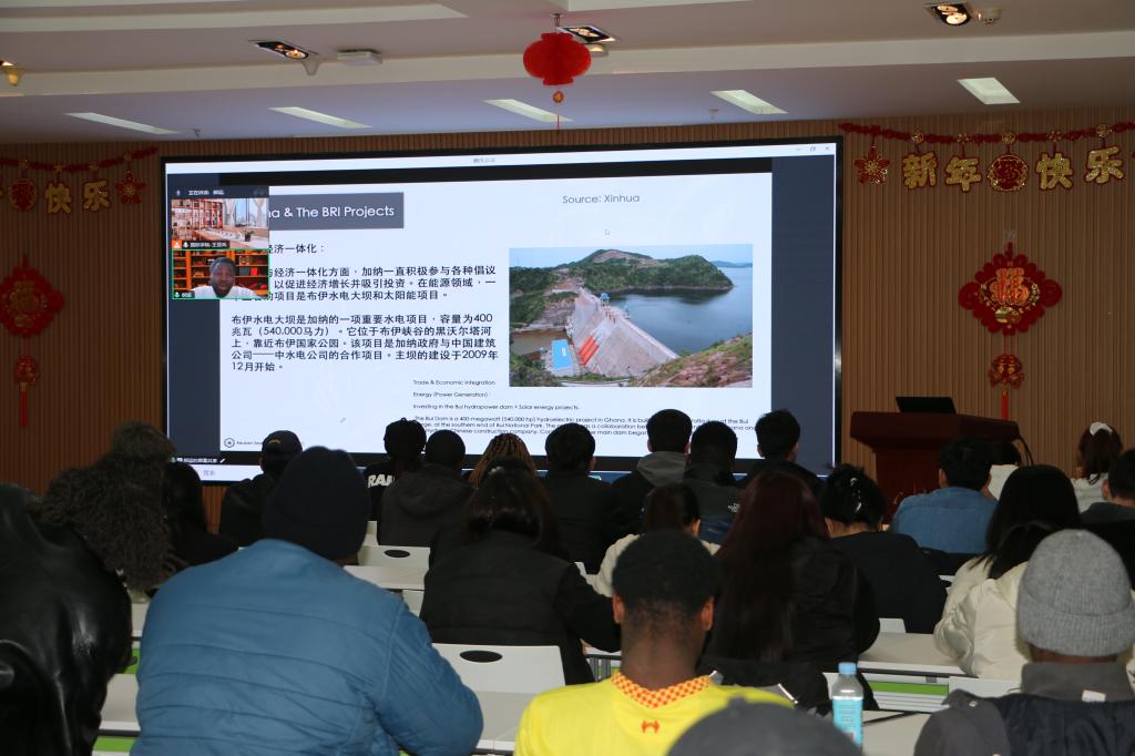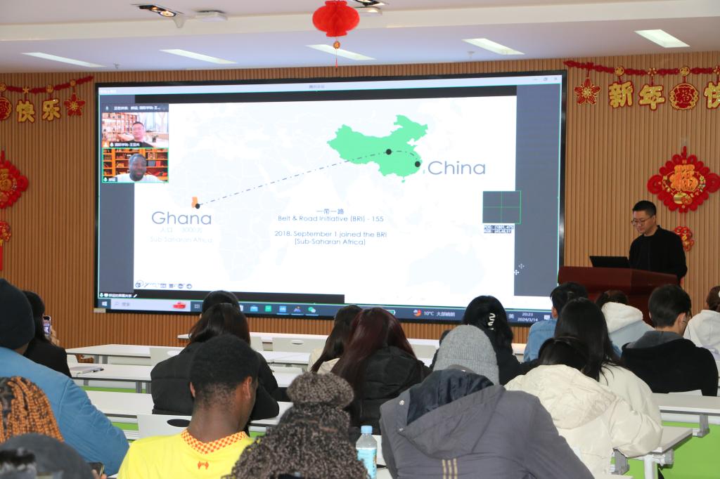 2024年3月14日晚上,学院邀请优秀来华留学校友郝运(Reuben Seyram Komla Agbozo)开展了丝路“和合”讲坛第四讲,郝运作了题为《加纳与“一带一路”建设》的报告,他从“一带一路”的提出、加纳加入“一带一路”的历程,结合布伊水电大坝、公路铁路等基础设施建设项目实例,生动展现了“一带一路”建设十年来取得的成绩成果,深刻诠释了“一带一路”建设的重要意义,最后他总结到:“一带一路”是一条互惠互利的路、合作共赢的路,有利于深入推进文化交流、教育合作、网络互联、国际互通、资源共享、创造实践工作机会。
