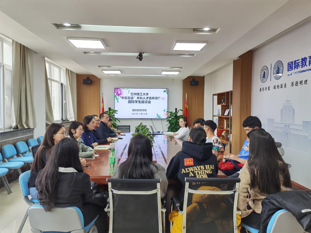 2023年12月14日下午,学院在彭家坪校区敦雅楼A区会议室组织召开了“中蒙友谊”本科人才培养项目国际学生座谈会。学院领导班子、国际中文教师及“中蒙友谊”本科人才培养项目国际学生代表参加了座谈会。学院领导分别结合分管工作通报了学生学习、生活、管理、服务、学风建设、日常行为养成等相关情况;国际中文教师结合各自课程任务,对学生的课堂、学业表现做了梳理总结;国际学生感谢学校、学院老师们的照顾和关心,逐一分享了学习生活的收获和感受,并结合自身学习生活实际对学校发展提出了意见建议。