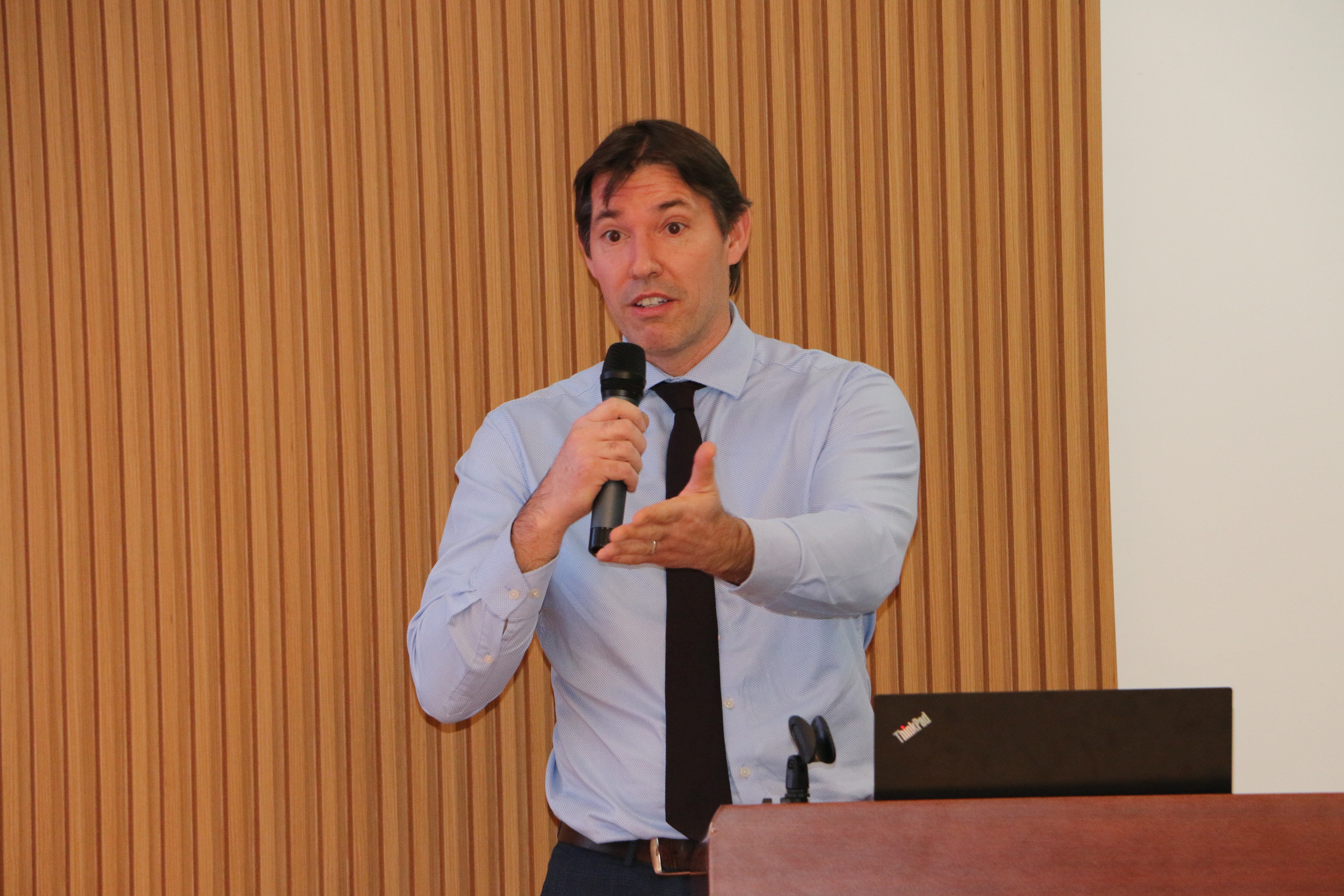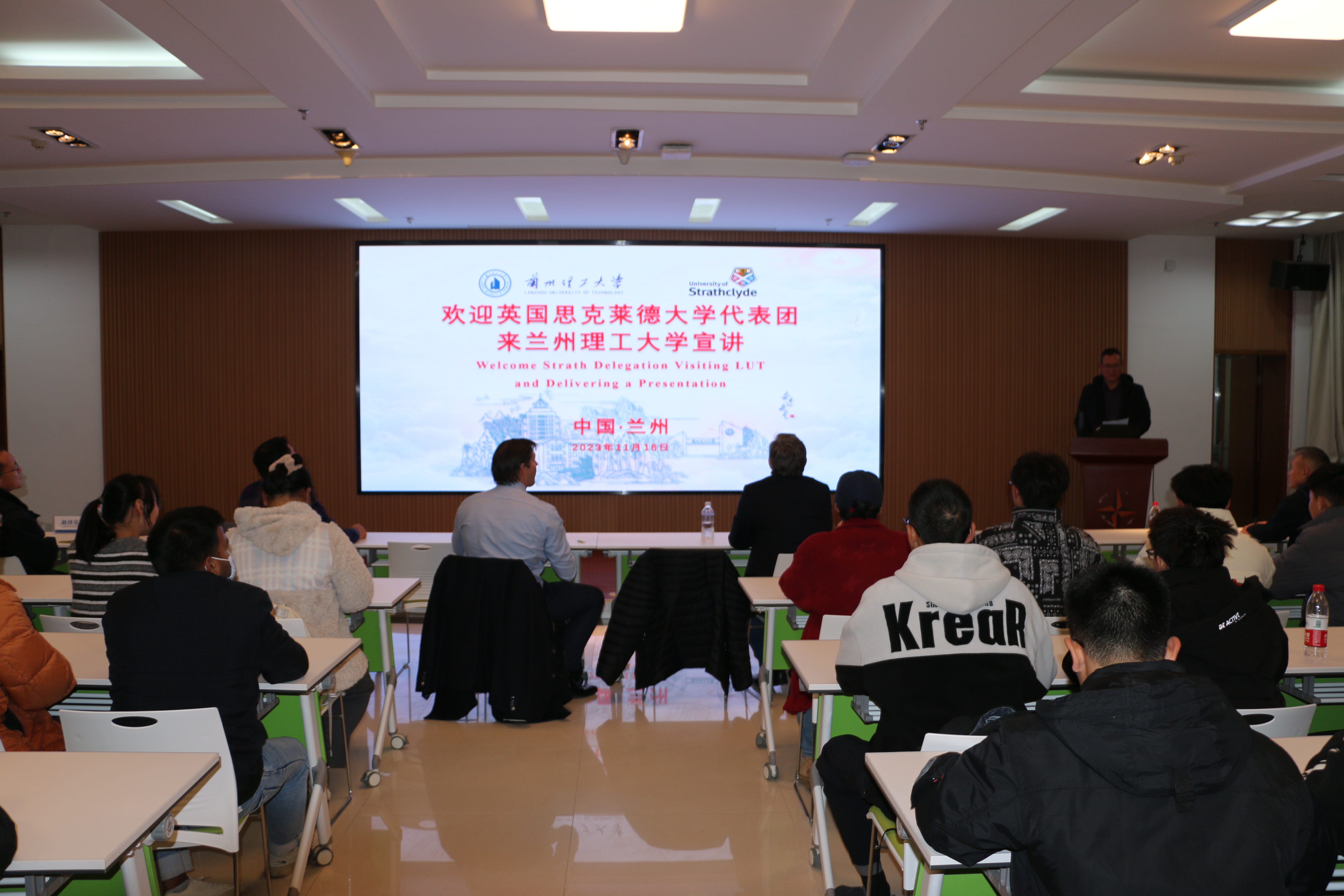刘永平对代表团来校宣讲2+2联合培养项目表示热烈欢迎,他介绍了英国思克莱德大学与我校国际教育交流情况,介绍了国际班项目学生的培养情况。随后,斯图亚特·詹姆斯·肖特豪斯(Stuart James SHORTHOUSE)先生,工程学院电子工程系教授伊戈尔·蒂莫什金·里德(Igor TIMOSHKIN Reader)博士分别从地理位置、资源优势、学科排名、校企合作、校友情况、联合培养等方面开展了专题宣讲。