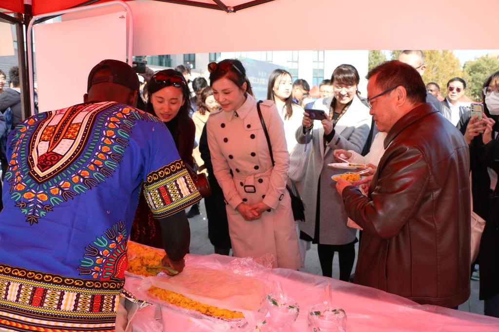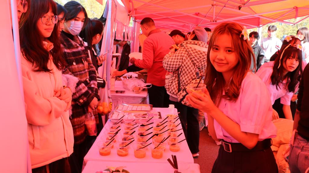 开幕式后,“美食嘉年华”版块活动随即开始,共设置36个展位,其中国际学生展位35个、中国学生展位1个。中国学生展位由学校团委、文学院指导,学生社团国学会承办出展。通过展示各国独特的饮食、服饰、音乐、舞蹈等民俗文化特色,搭建起中外学生交流、互动的国际化舞台。美食展示的同时,中外学生纷纷参与到现场即兴表演和互动游戏环节,中外学生在品尝美食的同时,欣赏起各国特色鲜明的音乐、舞蹈,现场氛围热烈,为师生带来了一场丰富多彩、独具特色的视听盛宴。