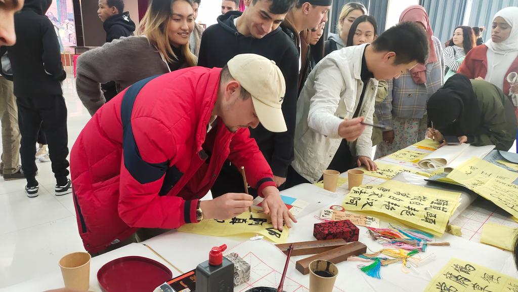 传承国学经典,弘扬传统文化。2023年10月22日下午,来自俄罗斯、越南、也门、乌兹比克斯坦等10个国家的68名国际学生在彭家坪校区大学生活动中心参加了由校团委主办、文学院承办的“古韵流光,琴音相约”兰州理工大学首届古琴雅集活动。活动以中国古琴为主轴,在一场精彩的古琴演奏中拉开序幕,以琴相聚,以琴会友,赏古曲曼妙,品墨香氤氲。此外,活动还设有中国书法体验、围棋对弈等传统艺术的体验环节。这些亲身体验的活动让国际学生更直观地了解和感受到中国传统艺术的博大精深,通过这次活动,国际学生对中国文化的认识和了解得到了进一步的加深和拓展。(撰稿:张磊;终审:王春梅)