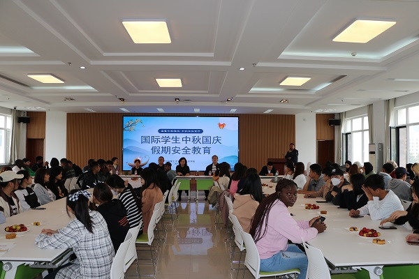 正值中秋节、国庆节假期来临之际,为提高国际学生安全意识、维护安全稳定秩序,学院组织在校国际学生在敦雅楼A区学生活动中心开展了2023年中秋国庆“双节”假期主题安全教育活动。学院班子成员、相关工作人员及国际学生参加教育活动。