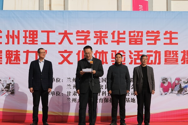 2023年4月8日,我院在兰州太平鼓教育保护实践基地举行来华留学生“感知非遗魅力”文化体验活动暨文化体验基地揭牌仪式。兰州新区西岔园区管理委员会副主任庞庆明、甘肃凯盛教育科技有限公司董事长何跟宝、甘肃金洲颐和园旅游开发有限公司董事长魏应生、兰州永宏太平鼓文化发展有限公司董事长魏怀东、兰州太平鼓教育保护实践基地校长王进选,国际教育学院院长刘永平、副院长赵付青、学生工作办公室主任张磊及国际学生管理人员,来自泰国、越南、蒙古国、老挝、柬埔寨、印度尼西亚、也门、巴基斯坦等10余个国家的50多位国际学生参加活动和揭牌仪式。