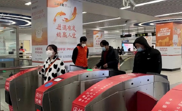 何威引导旅客有序扫码进站