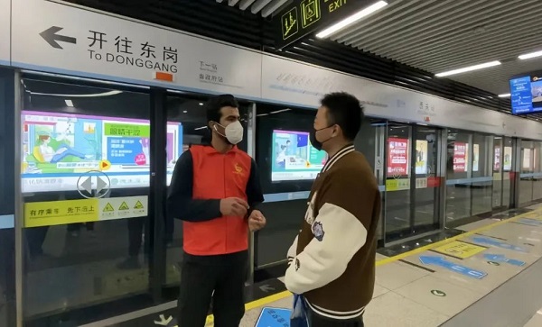 2023年2月,我校利比亚国际学生何威(HAMROUN ABDULRAHMAN ALMABROUK AMMAR)积极报名参加共青团兰州市委组织的“暖冬行动”志愿者活动,主要在兰州轨道交通一号线的东方红广场站、西关站、马滩站负责旅客分流、协助老年人购票、引导旅客扫码进站等工作。