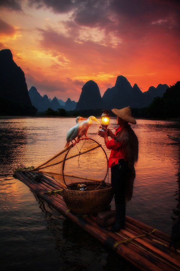 宋明在《河中的主人》作品描述中写道:当我第一次踏上桂林的土地,我完全没有想到我会来到一个美不胜收的人间天堂;对我来说桂林的一切都美丽且美好,在那里我遇到了很多充满正能量的中国朋友,他们给了我很多帮助;七天的行程是我人生中最美好的时光,这张照片也是我拍过最美的夕阳,天时地利、人杰地灵、绿水青山,一切都完美的结合在这张照片里,这是对中国“绿水青山就是金山银山”的绿色发展理念最完美的诠释。