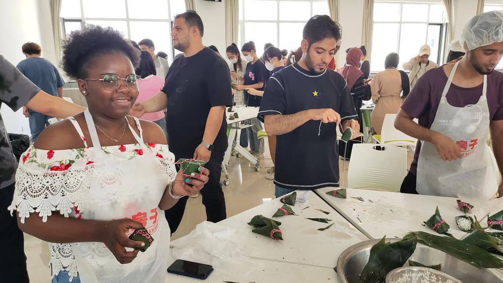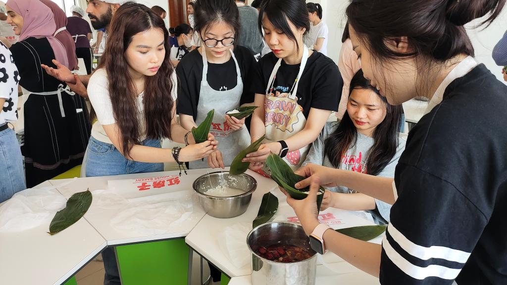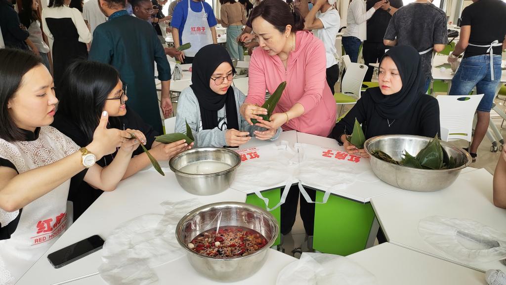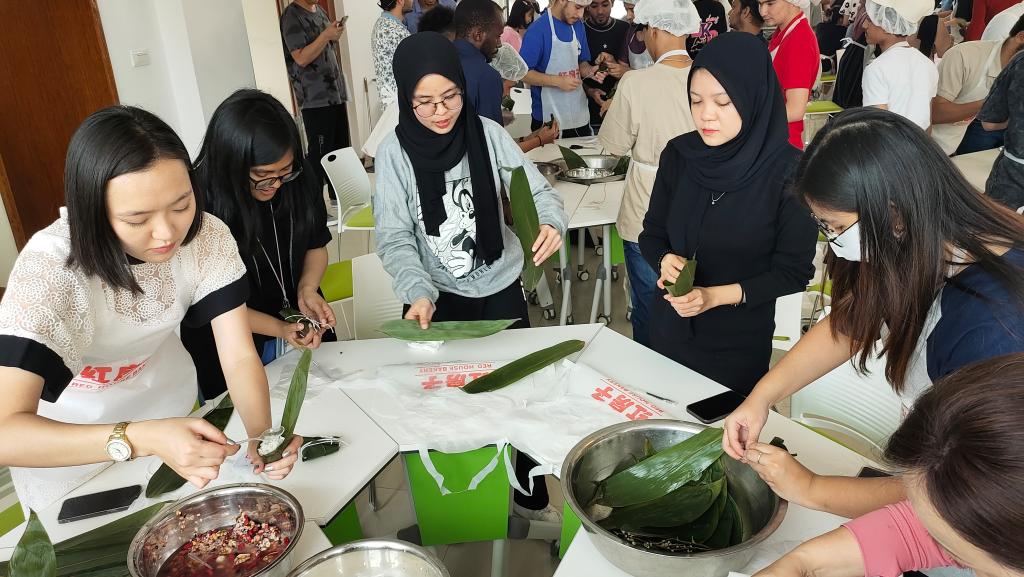 五月初五是中国传统节日--端午节。为迎接端午佳节到来,丰富国际学生文化生活,了解中国传统文化,2023年6月16日下午,学院开展以“粽叶飘香迎端午,传承文化粽飘香”为主题的国际学生包粽子文化体验活动,有来自塔吉克斯坦,土库曼斯坦、巴基斯坦,越南,泰国,尼日利亚和阿富汗等14个国家的55位国际学生参加了本次活动。