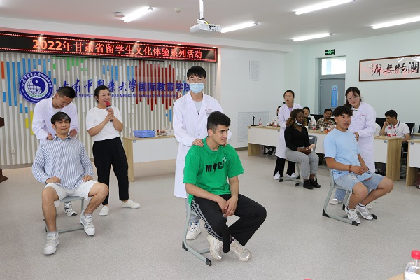 为进一步加强来华留学生中国国情教育、文化体验活动,丰富来华留学生的课外生活,结合甘肃省地域文化特色,甘肃省教育厅、甘肃省人民政府外事办公室组织全省部分高校来华留学生在甘肃中医药大学举办了2022年甘肃省留学生中医药文化体验活动。2022年6月26日,我校来自7个国家的15名来华留学生参加了启动仪式和文化体验活动。