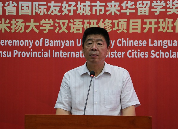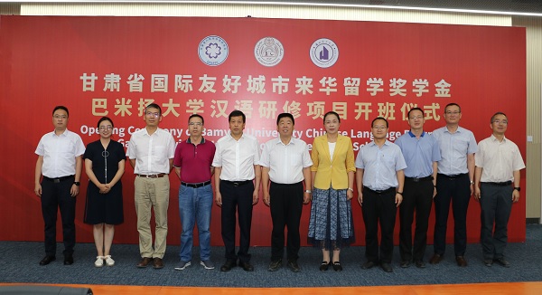 甘肃省国际友好城市来华留学奖学金巴米扬大学汉语研修项目,是在甘肃省友好协会的大力支持下,学校面向巴米扬大学招收的首批甘肃省国际友好城市来华留学奖学金项目学生,43名项目学员中,友城奖资助20名,我校自筹经费资助23名。项目将在进一步加深友城间教育合作交流,提升甘肃省教育对外开放、中外人文交流水平方面发挥积极作用。开班仪式后,与会嘉宾参观了解樱花园项目规划及建设情况。(撰稿:崔丽红;终审:李德顺)