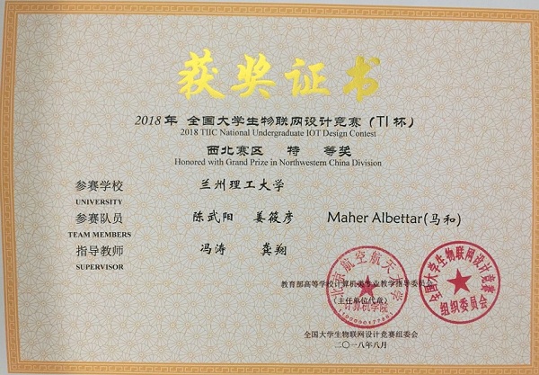 与中外学生在一起 近日,教育部公布了2018年度中国政府优秀来华留学生奖学金获奖结果,经个人申请、导师推荐、国际教育学院申报,我校计算机与通信学院来自叙利亚的来华留学研究生ALBETTAR MAHER(马和)荣获该项奖学金,一次性奖励人民币3.00万元。这是我校自2012年招收来华留学学历生以来首次获得该项奖学金。 中国政府优秀来华留学生奖学金是教育部为扩大中国政府奖学金的辐射面和影响力,培养更多知华友华、品学兼优、成绩优异的国际优秀人才而设立的奖学金项目,2018/2019学年面向全国高校共提供162个开放名额。 马和,英文名ALBETTARMAHER,男,叙利亚,2015年9月来我校学习,中国政府奖学金生,现为我校计算机与通信学院计算机应用技术专业硕士研究生,计算机与通信学院学院冯涛教授担任导师。马和在校期间层先后获得全国大学生物联网设计竞赛西北赛区决赛特等奖,获得美国CISCO公司网络专家认证证书、美国Tridium公司技术能力认证证书多项,参与《多联机VRF空调系统的集中控制系统升级》等多项物联网开发项目。在校期间积极参加学校组织的各项社会实践活动,在中华优秀传统文化传播和中外人文交流活动中表现突出,获得甘肃省来华留学生“习近平新时代中国特色社会主义思想研讨”征文比赛优秀奖。 |