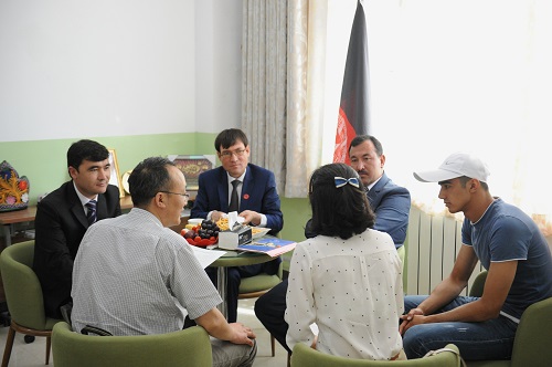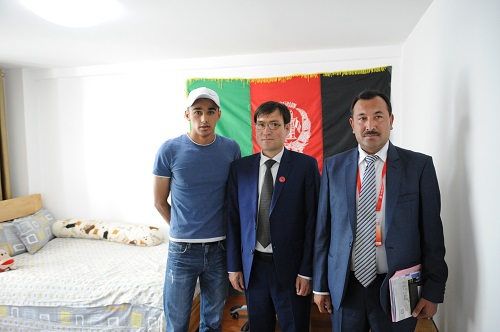 代表团考察留学生公寓 2017年7月7日下午,阿富汗伊斯兰共和国巴米扬省副省长穆罕默德·穆巴里克、省长办公厅主任萨贝拉·纳瓦兹一行5人,在甘肃省政府外事办党组成员、甘肃省友协专职副会长刘晓林,学校副校长韦尧兵、甘肃省友协友城处处长朱玉明的陪同下访问国际教育学院并看望阿富汗留学生。 学院党总支书记任鹏向代表团介绍了学校留学生情况和各类奖学金设置情况,汇报了阿富汗留学生在校期间学习、生活和参加各类体育比赛及文化交流方面的优异表现。代表团一行与阿富汗留学生进行了全面的交流,并考察了留学生公寓生活、住宿情况。 |