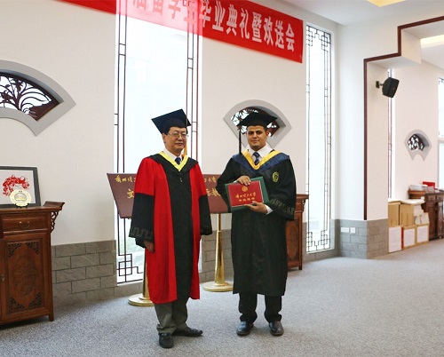 韦尧兵副校长为外国留学生颁发毕业证、学位证