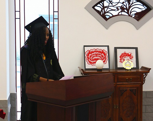 全体教师与毕业生合影 6月28日,2016届外国留学生毕业典礼暨欢送会在崇文馆举行,韦尧兵副校长、国际教育学院全体教师、18名来华留学毕业生及外国留学生代表参加典礼和欢送仪式,典礼由国际教育学院院长助理焦娜主持。 韦尧兵副校长为全体毕业生颁发了毕业证书和学位证书,国际教育学院院长杨晓霭在致辞中对外国留学生在我校期间的学习和生活给予充分肯定,对各位留学生圆满完成学业表示热烈的祝贺,并希冀外国留学生“无论在哪里,都是友谊的使者、文化的桥梁”。 来自哈萨克斯坦、企业管理专业硕士研究生杰恩斯和来自肯尼亚、土木工程专业本科生伊丽莎白,代表来华留学毕业生发言,向母校和各位老师给予外国留学生无比深厚和无微不至的关怀、关爱和关心表示诚挚的感谢,毕业不仅意味着留学生完成了人生中的一段重要里程,也标志着他们即将带着深厚的“兰州理工大学”情怀走向新的历程,无论今后在何方工作,在兰州理工大学的学习生活的美好时光,是他们宝贵财富和难以忘却的记忆。 国际教育学院教师与留学生进行了亲切交谈,祝愿留学生在今后事业有成、生活幸福,并作为文化使者推动中外文化交流。留学生向各位教师畅谈了在我校学习期间的感受,表示牢记老师们的谆谆教诲,将对母校的依恋情怀化作今后工作生活的动力,为自己的祖国和中外文化交流做出应有的贡献。 |
