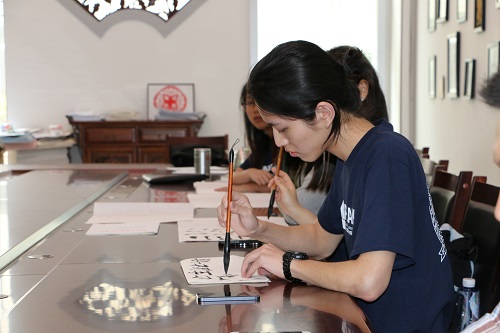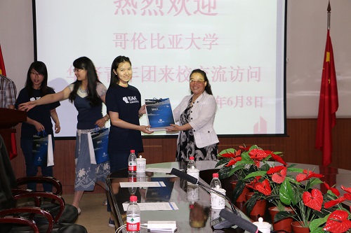 |  杨晓霭院长向访问团成员赠送纪念品  参观校史馆  “汉字起源”讲座  体验茶文化  书法练习  访问团全体成员 2016年6月8日,中国加拿大青年文化教育协会加拿大英属哥伦比亚大学(UBC)华裔青年团一行10人来我校交流访问。访问团成员包括带队老师,加拿大英属哥伦比亚大学、西门菲莎大学经济学、人力资源心理学等专业本科生,以及东方中学学生志愿者。 在交流访问欢迎仪式上,国际教育学院院长杨晓霭介绍了学校概况并并赠送了纪念品。访问团成员参观了校史馆、工程训练中心、电工电子实验室和校园。在崇文馆学习观摩了茶艺茶道、书法练习,听取了“汉字起源与发展”讲座,并于国际班学生进行了交流座谈。访问团成员对中国传统文化表现出极大的兴趣,交流访问在访问团的欢声笑语中结束。此次交流访问在增进两校学生交流的基础上,推进了我校与英属哥伦比亚大学的交流和合作。 |