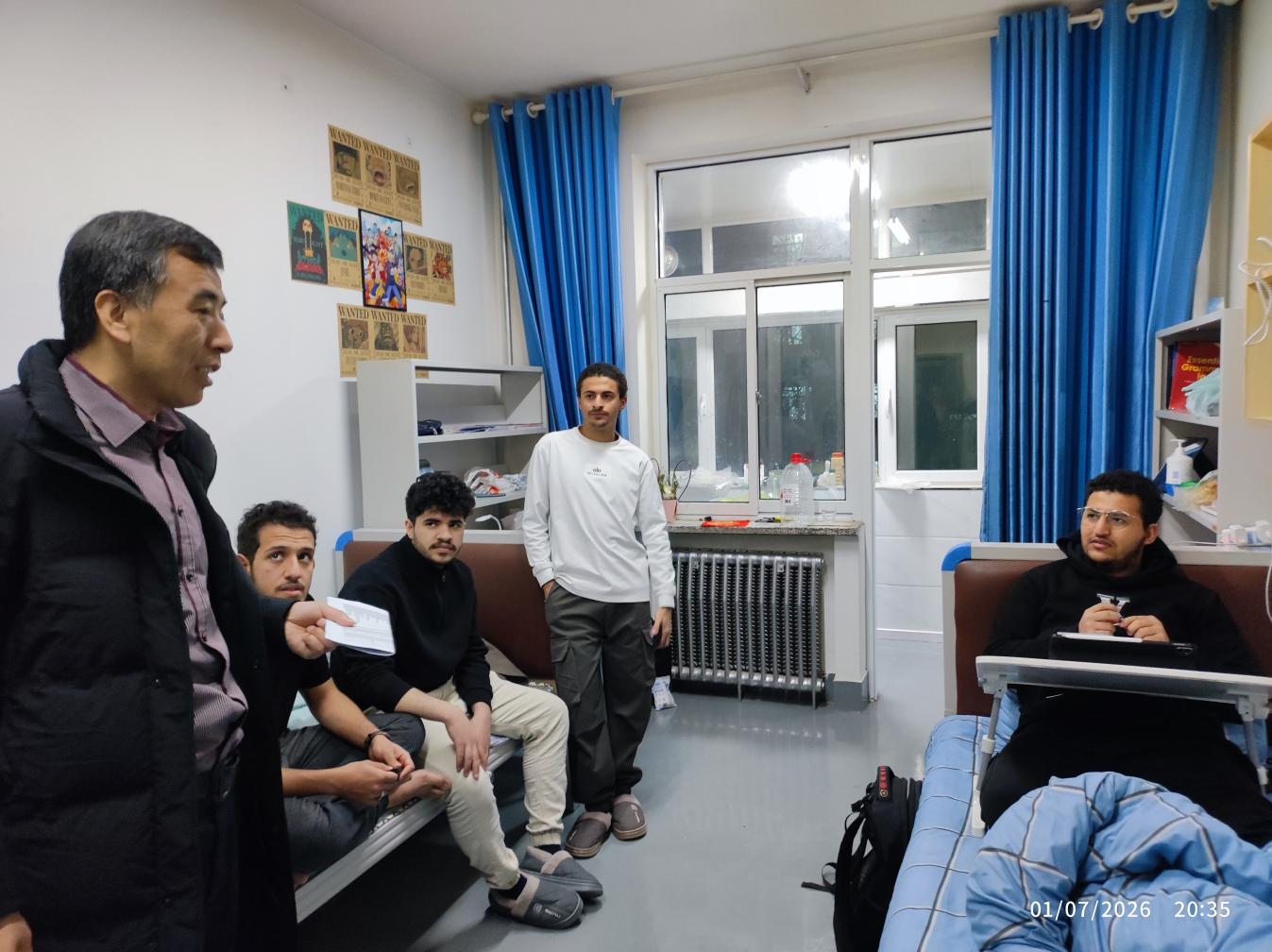 大会结束后,国际合作部直属党支部书记韩国强带领辅导员队伍深入国际学生公寓开展安全走访检查,逐间查看宿舍用电安全、消防设施配备、卫生环境等情况,现场排查安全隐患,对发现的问题及时督促整改。同时,与学生亲切交流,了解其假期规划与生活需求,叮嘱学生务必重视安全问题,度过一个平安祥和的假期。