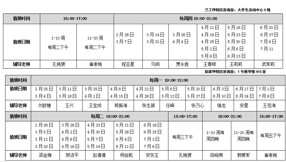 全体国际学生: 2019年春季学期学校心理咨询室将于第一周面向全校学生(包括国际学生)正式开放,如果你在学习、人际关系、情绪等方面有困惑、烦恼等问题,欢迎来到心理咨询室,我们以热情的态度、专业的精神细心聆听你的心声、轻解你的心结! 心理咨询时间安排: