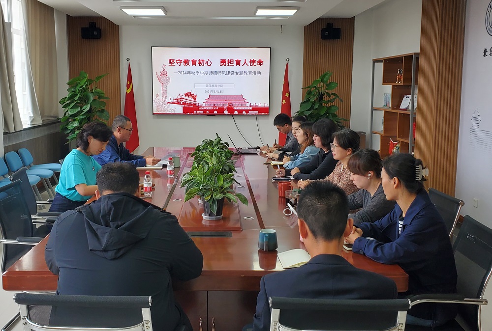 为进一步加强师德师风建设,稳妥审慎做好新时期来华留学教育工作,2024年9月13日上午,学院组织开展了“坚守教育初心 勇担育人使命”为主题的师德师风建设专题教育活动。学院师德建设和督查领导小组组长、院长刘永平主持教育活动并讲话。