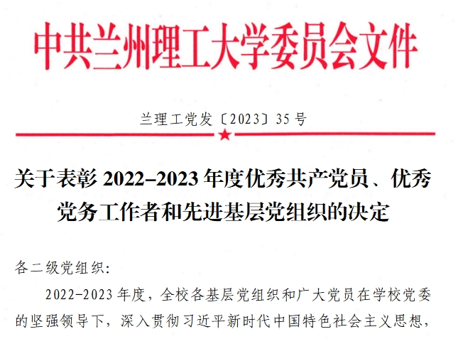 2023年6月28日,学校下发《关于表彰2022-2023年度优秀共产党员、优秀党务工作者和先进基层党组织的决定》,学院郭瑀峰同志荣获2022-2023年度“优秀共产党员”。郭瑀峰同志事迹材料如下: