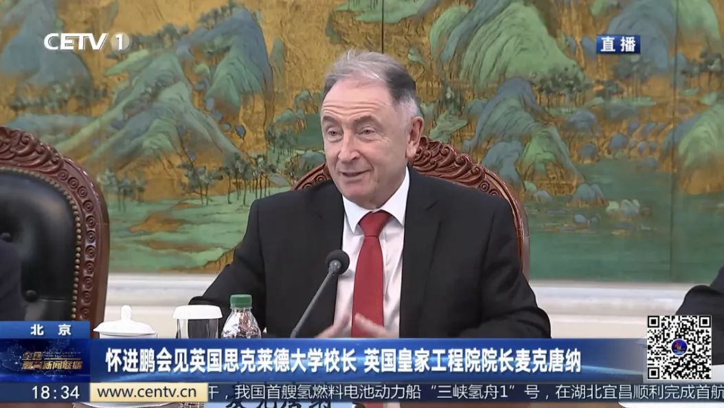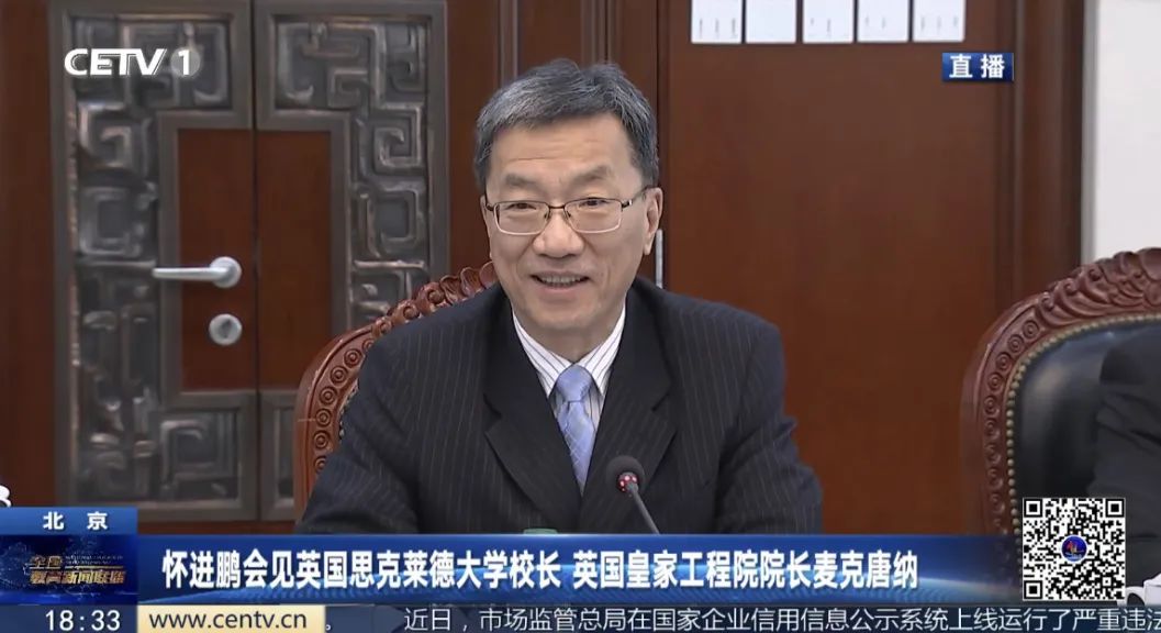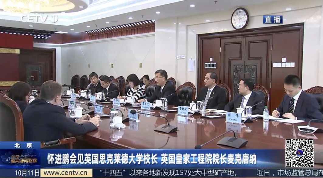 2023年10月10日,中国教育部部长怀进鹏与英国思克莱德大学校长、英国皇家工程院院长Professor Sir Jim McDonald进行友好会晤。双方就推动中英高等教育合作以及两国青年友好交往话题展开深入会谈。