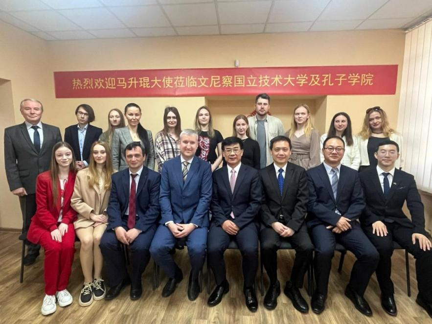 2025年1月17日,中国驻乌克兰使馆隆重举办马升琨大使到任暨2025年新春招待会,文尼察国立技术大学校长维克多·比利钦科,副校长尤里·布伦尼科夫,孔子学院乌方院长阿纳托利·杰克卢克受邀参加活动,校长向马升琨大使汇报了孔子学院发展情况并邀请大使访问文尼察国立技术大学及孔子学院。